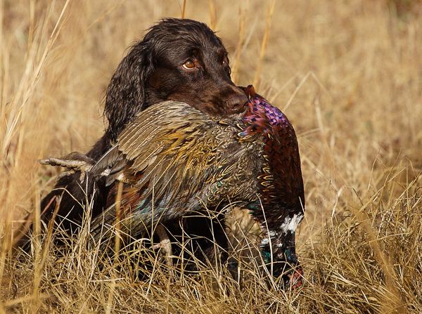 Rise, cocker spaniel, with male Pheasant. Photo by Millie Lattimer